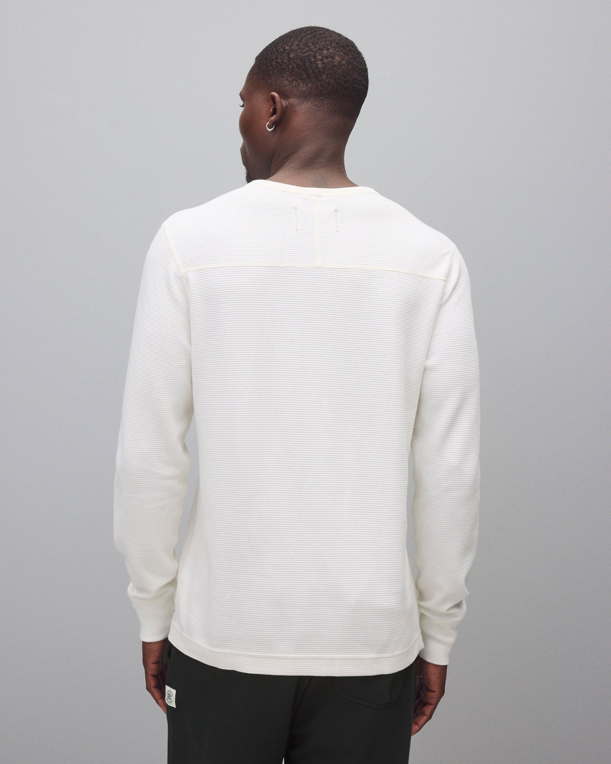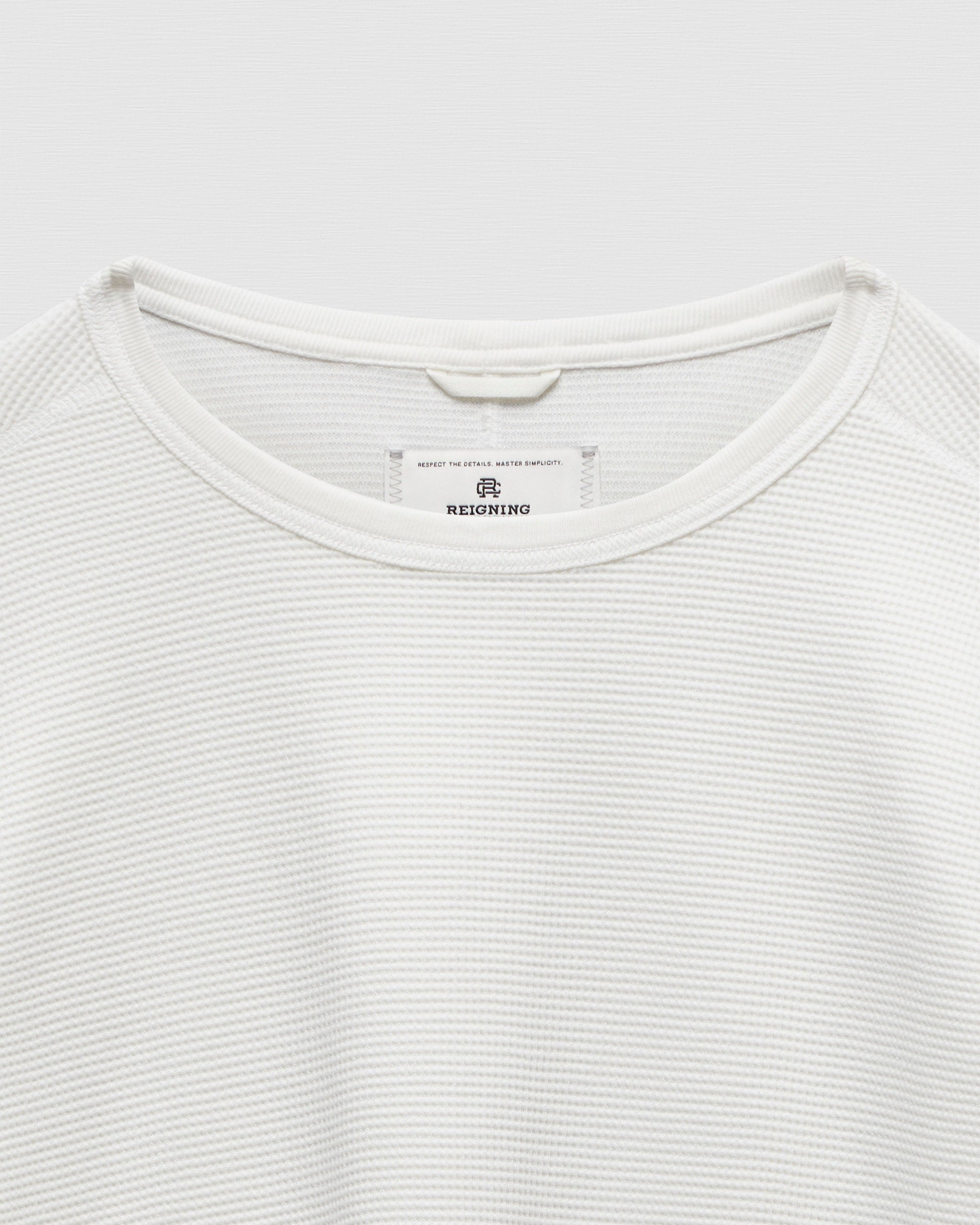 ロングスリーブは生地に快適性を追求したコーミング加工を施し、TENCEL™モダールで製造したワッフルニットを使用して製作。