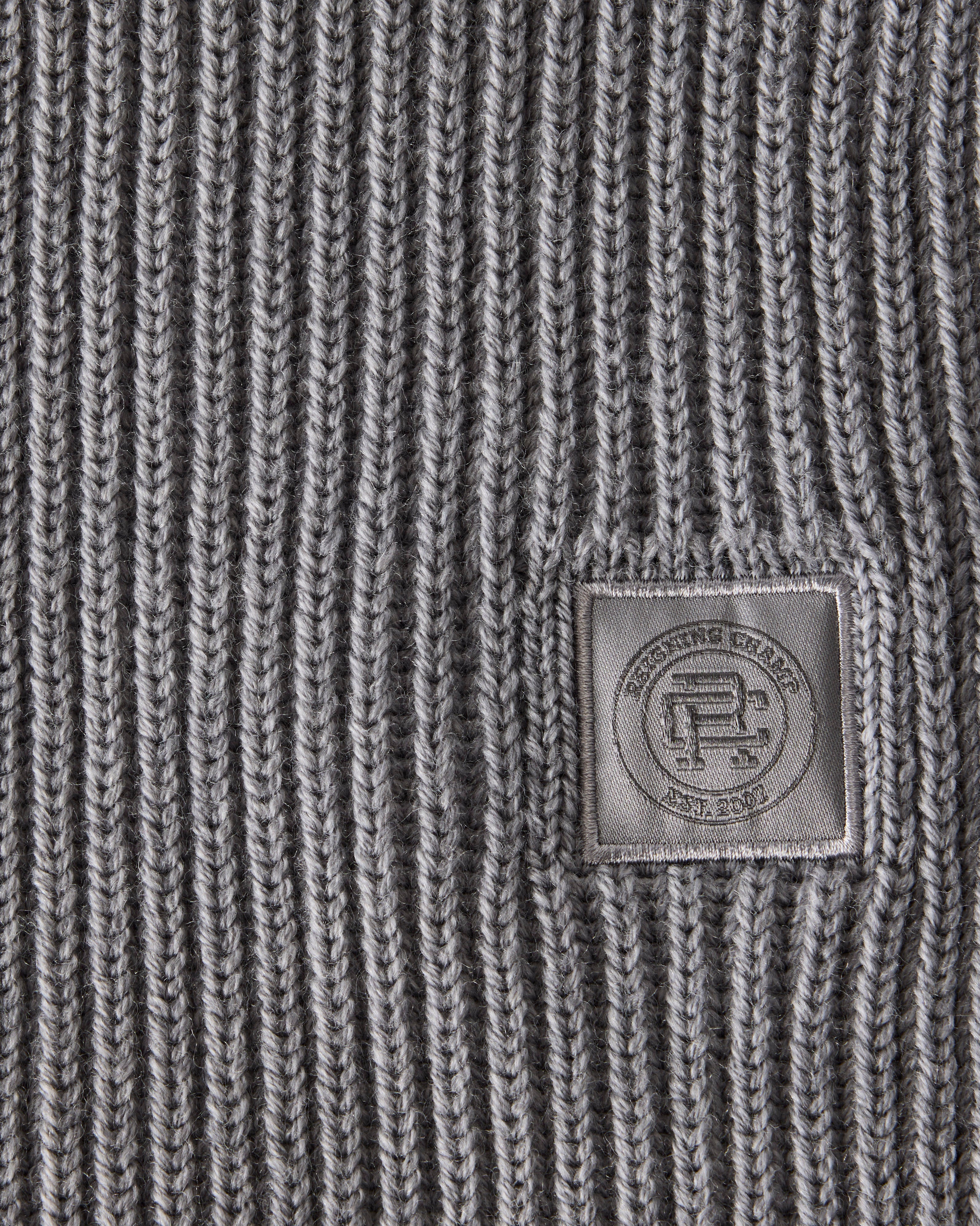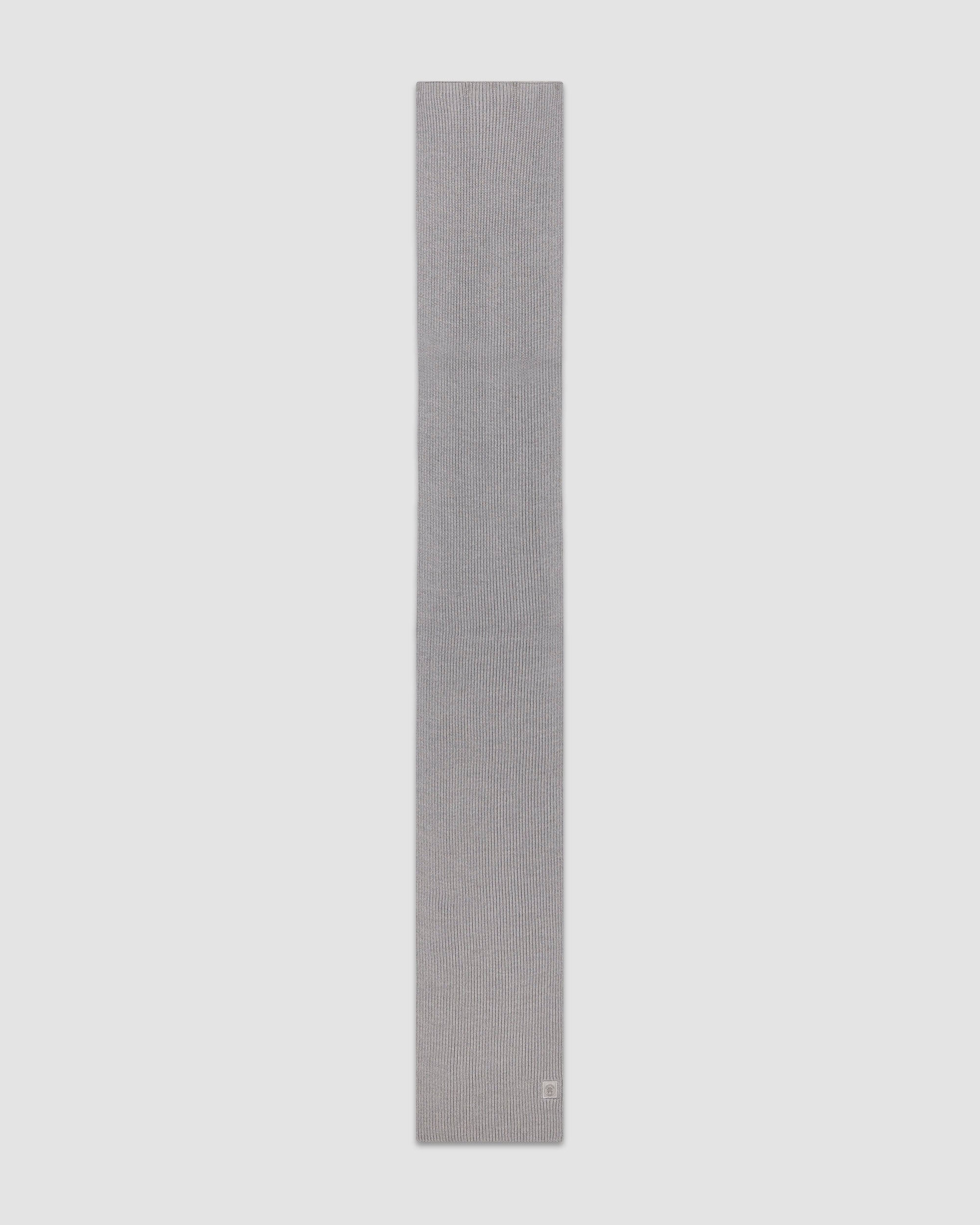 ニットスカーフは生地に天然の柔らかさ、通気性、温度調節機能で評価されるエクストラファイン・メリノウールを使用して製作。縫製された縁とクレストラベルで仕上げています。