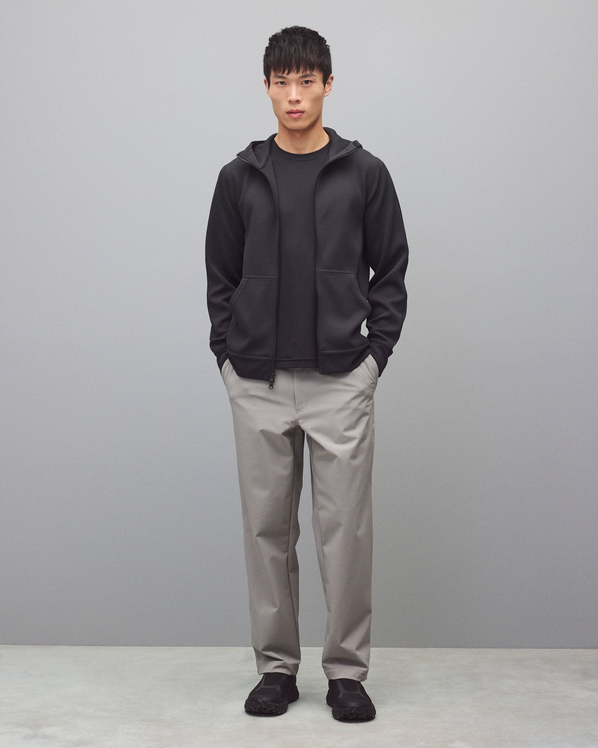 デュアルニットのジップフーディー寒冷な気候で効率的な保温性を発揮するよう設計。ダブルニットストレッチ素材は凹凸のある表地と滑らかな裏地が特徴で、抜群の快適性を実現しています。デザインには細身のフィット、二重構造のフード、YKKビスロンダブルジップ、フロントパッチポケット、共布の袖口と裾を採用。