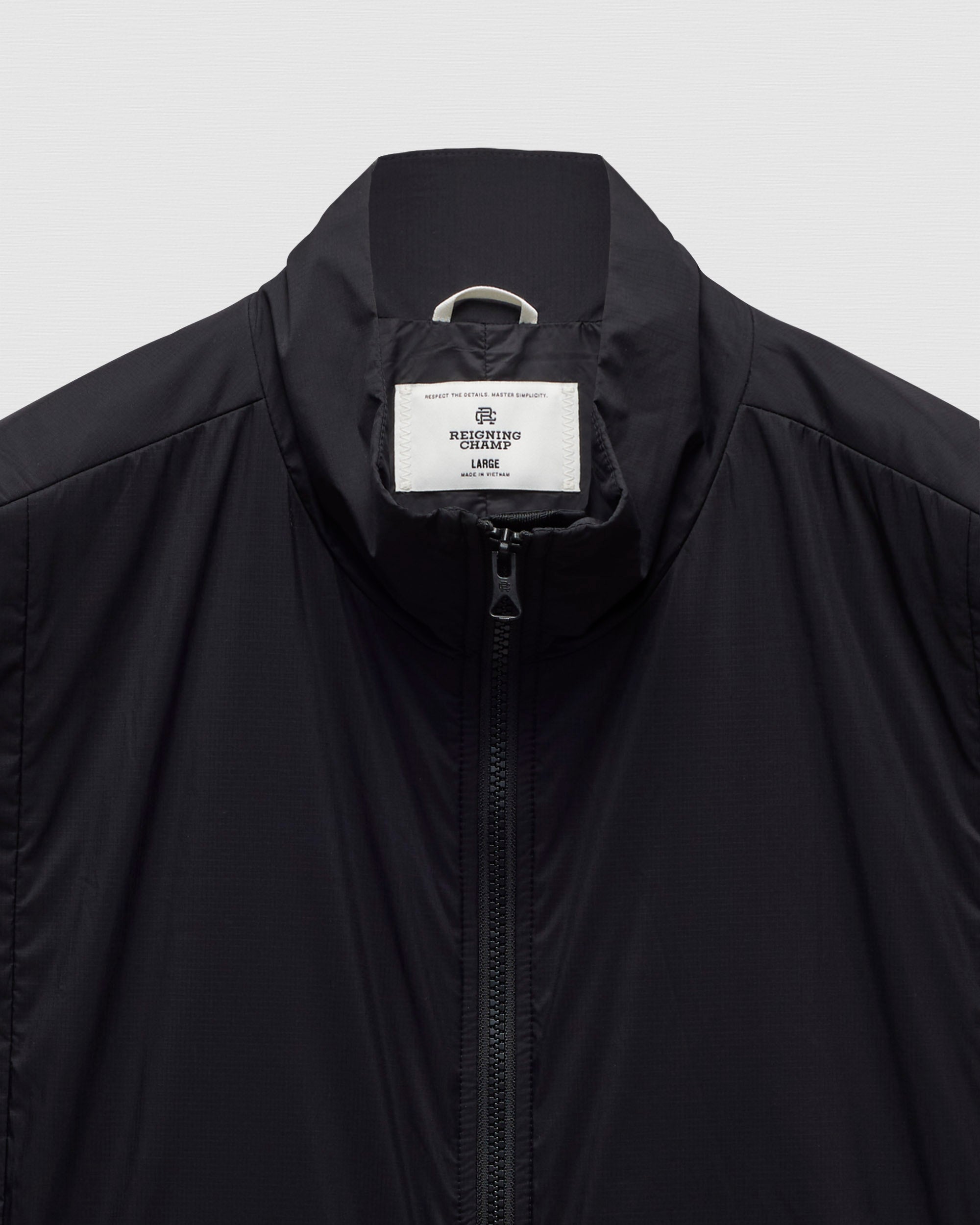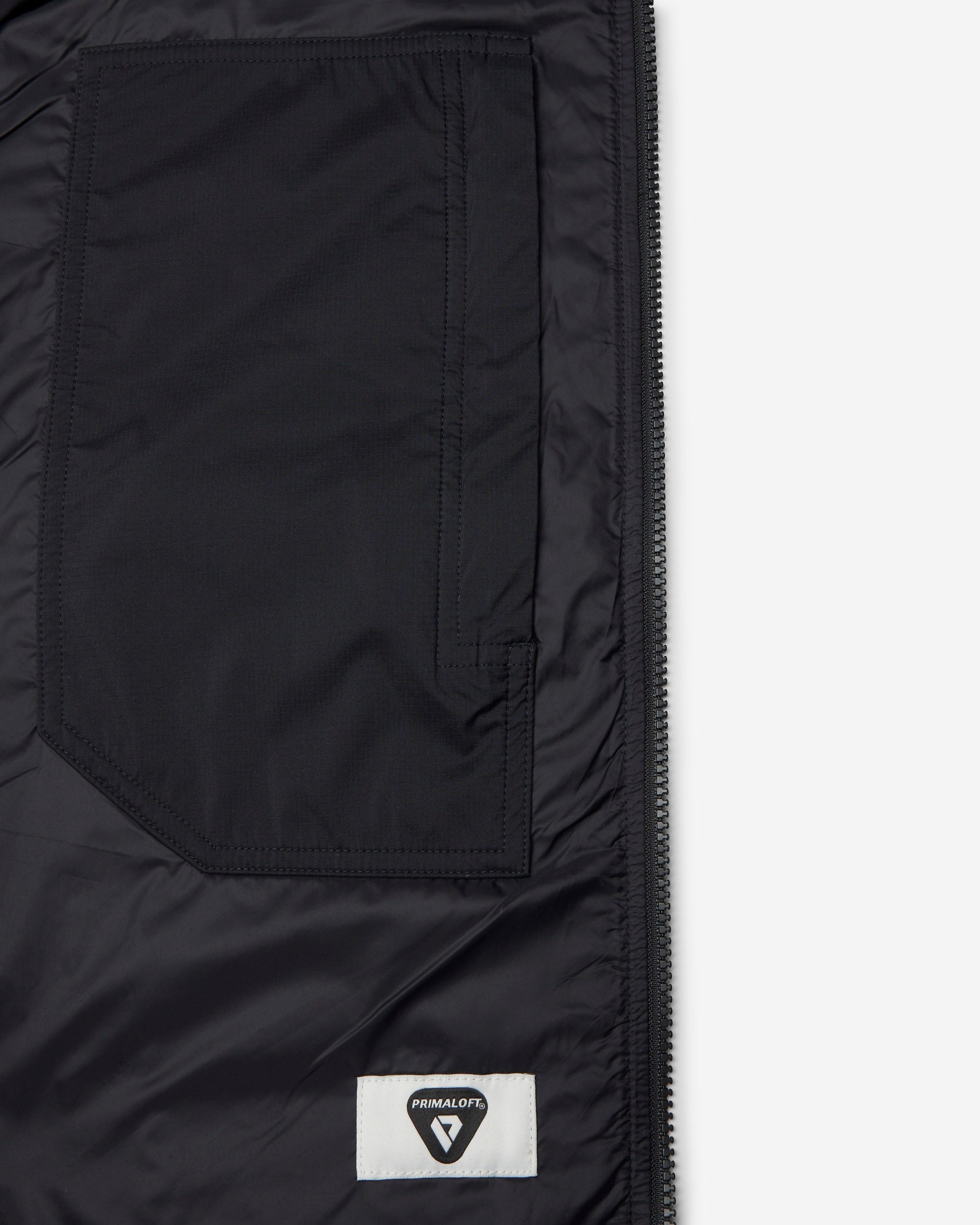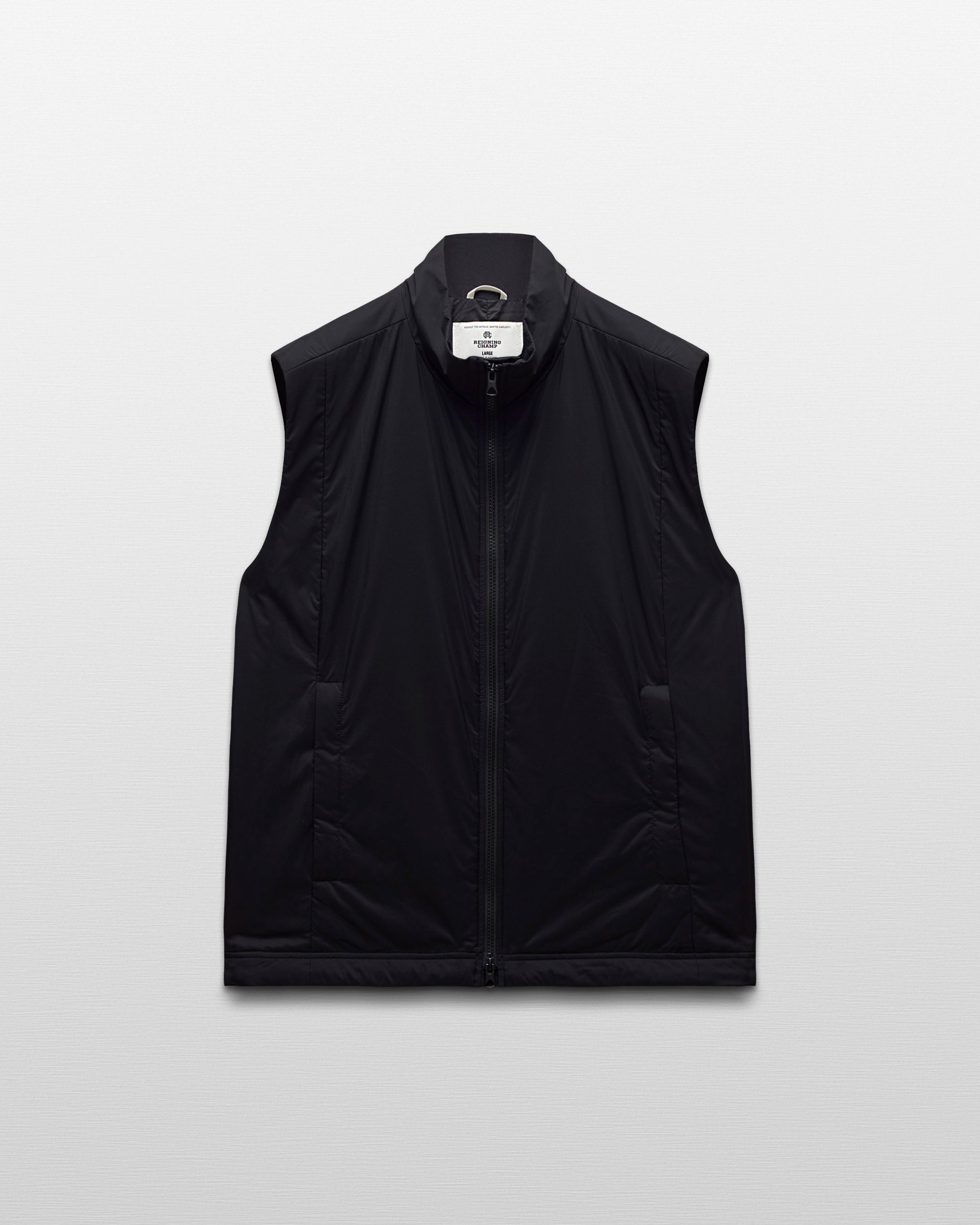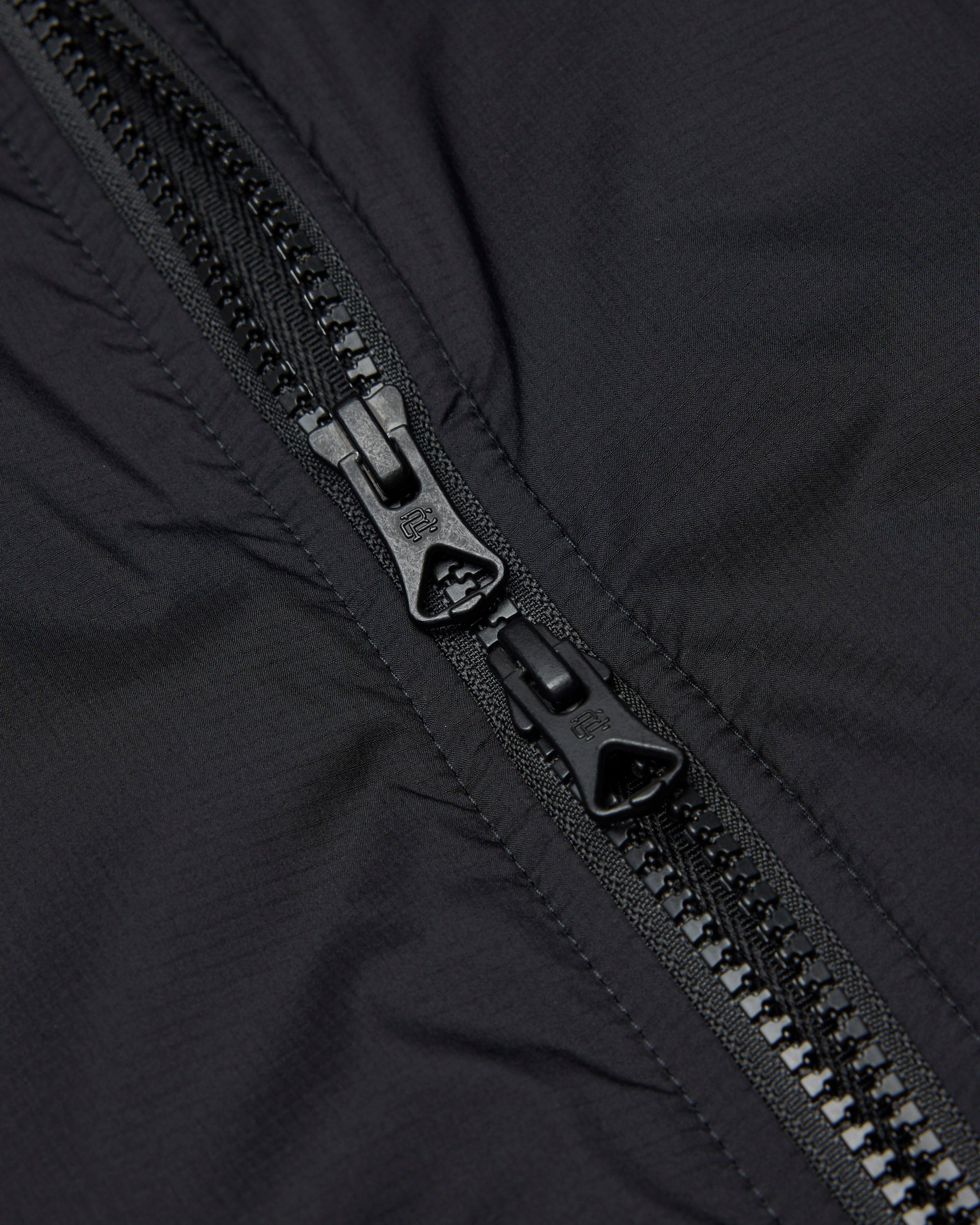 インサレーションジップベストは生地に耐久性と撥水性のある日本製ナイロンリップストップを使用して製作。Standard Fit、軽量で保温性に優れるPrimaLoft®インサレーションが特徴です。デザインにはモックネック、YKKビスロンダブルジップ、ジップポケット、内側のチェストポケット、調整可能なショックコード付きの裾を採用。