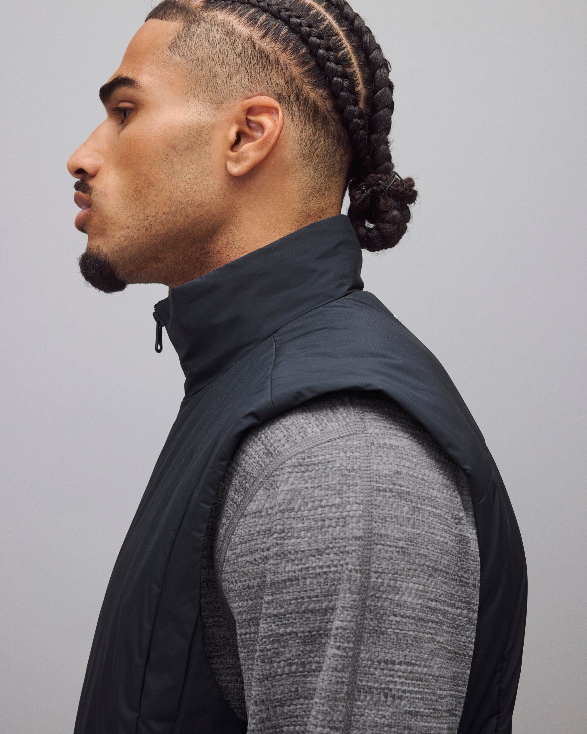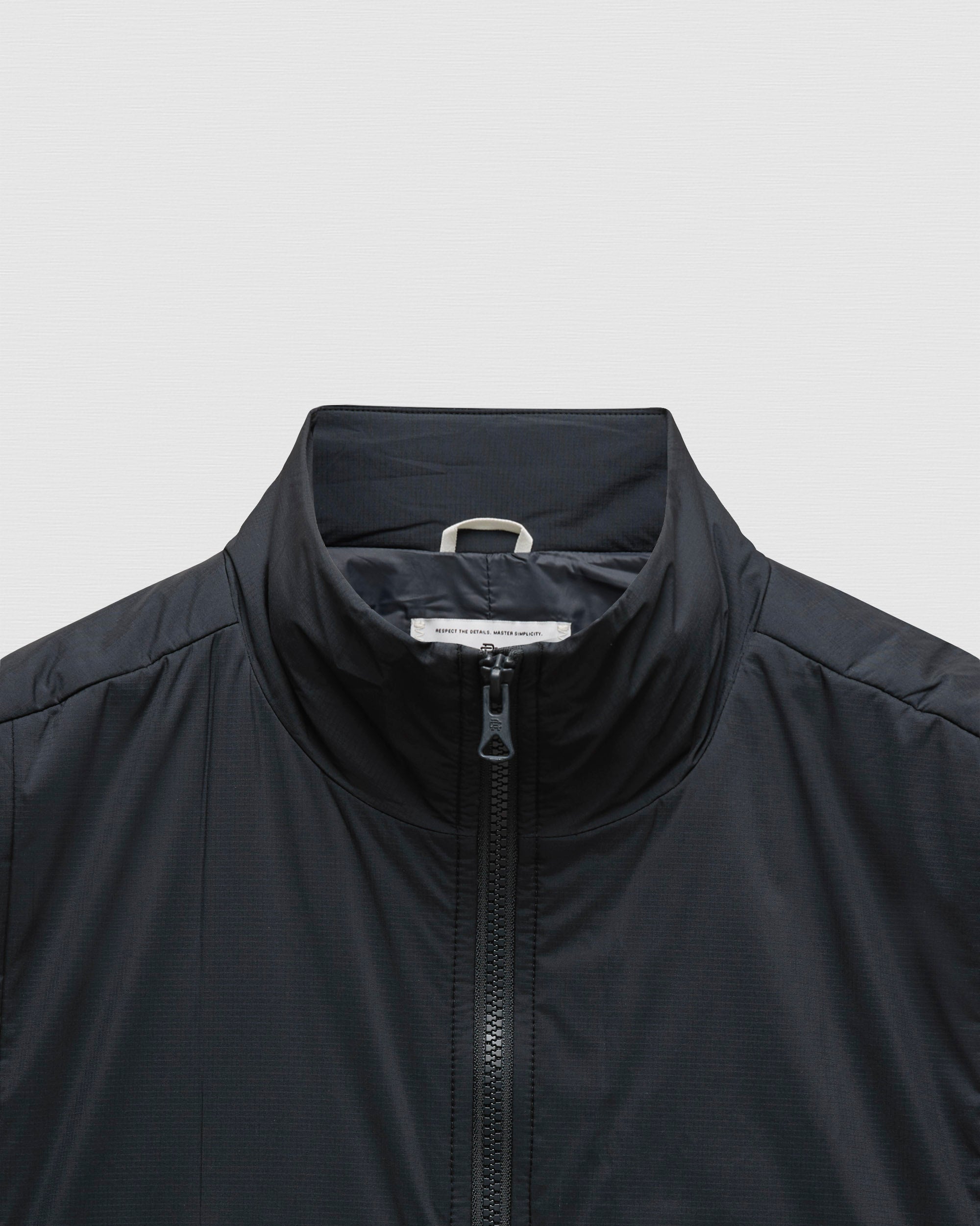 インサレーションジップベストは生地に耐久性と撥水性のある日本製ナイロンリップストップを使用して製作。Standard Fit、軽量で保温性に優れるPrimaLoft®インサレーションが特徴です。デザインにはモックネック、YKKビスロンダブルジップ、ジップポケット、内側のチェストポケット、調整可能なショックコード付きの裾を採用。