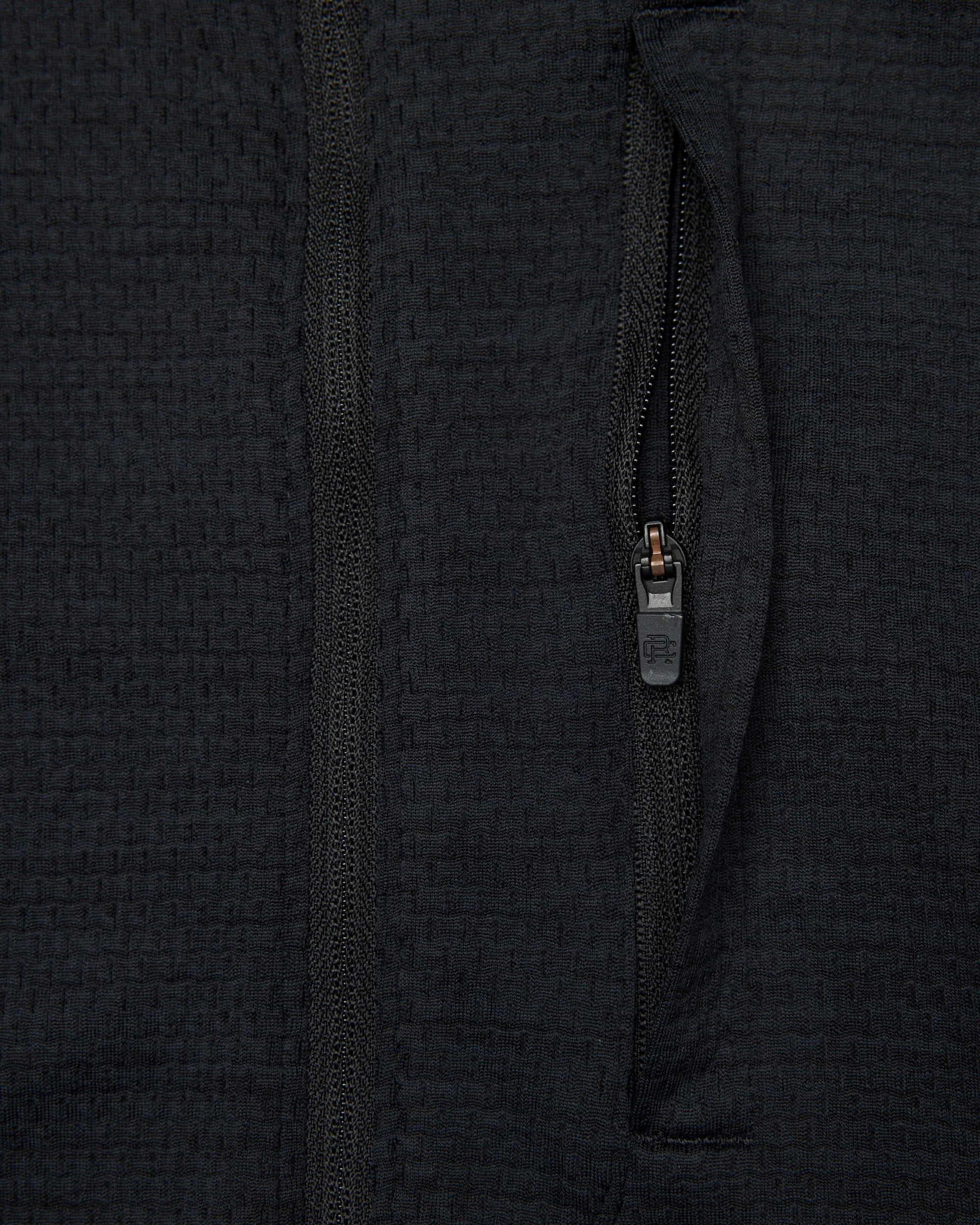 吸湿発散性に優れるトラックジャケットは、どんな状況下でも身体を涼しく保つよう設計。Solotex® Meshはストレッチ性、クッション性、通気性に優れ、滑らかなニットの裏地が特徴のパフォーマンス素材です。デザインにはスタンドカラー、YKKリバースコイルジップ、重ね仕様のジップチェストポケット、バインディング仕様のフロントポケット、袖口、裾を採用。
