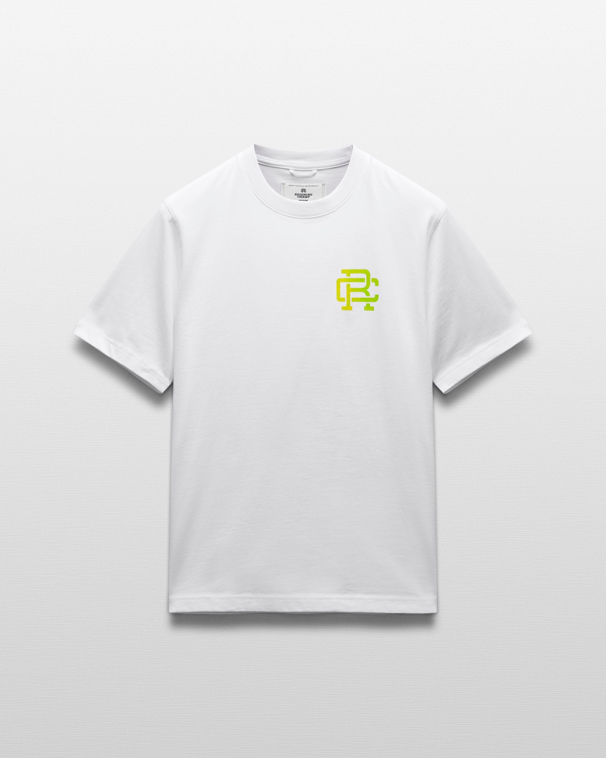 半袖Tシャツは生地にプレミアムMidweight Jerseyを使用して製作。前後のネオンスプレー調のグラフィックロゴのが特徴です。デザインには少し肩を落とし、身頃がストレートシルエットのOG Standard Fitを採用。ディテールにはリブカラー、セットインスリーブ、シグネチャーのフラットロックシームを採用しています。