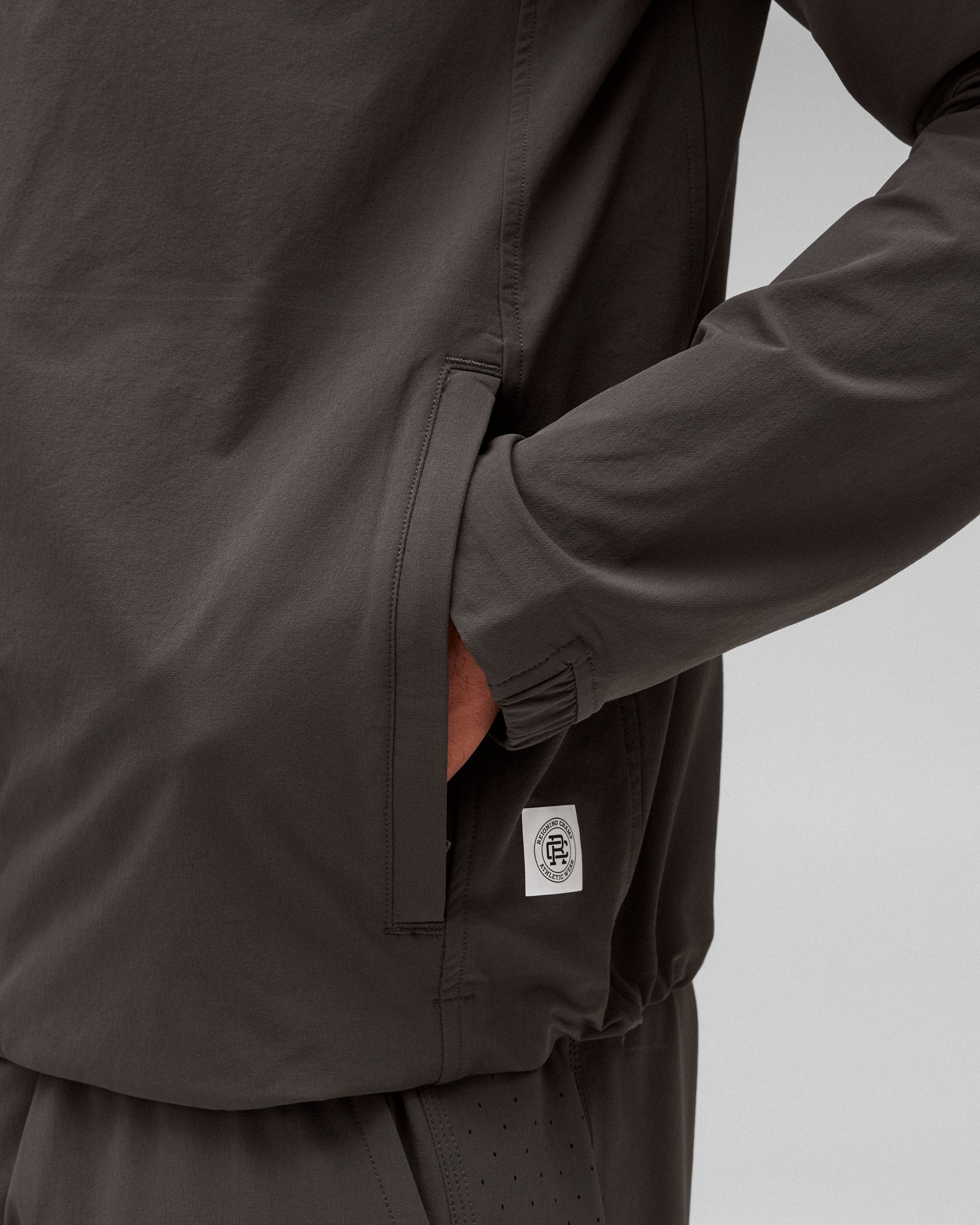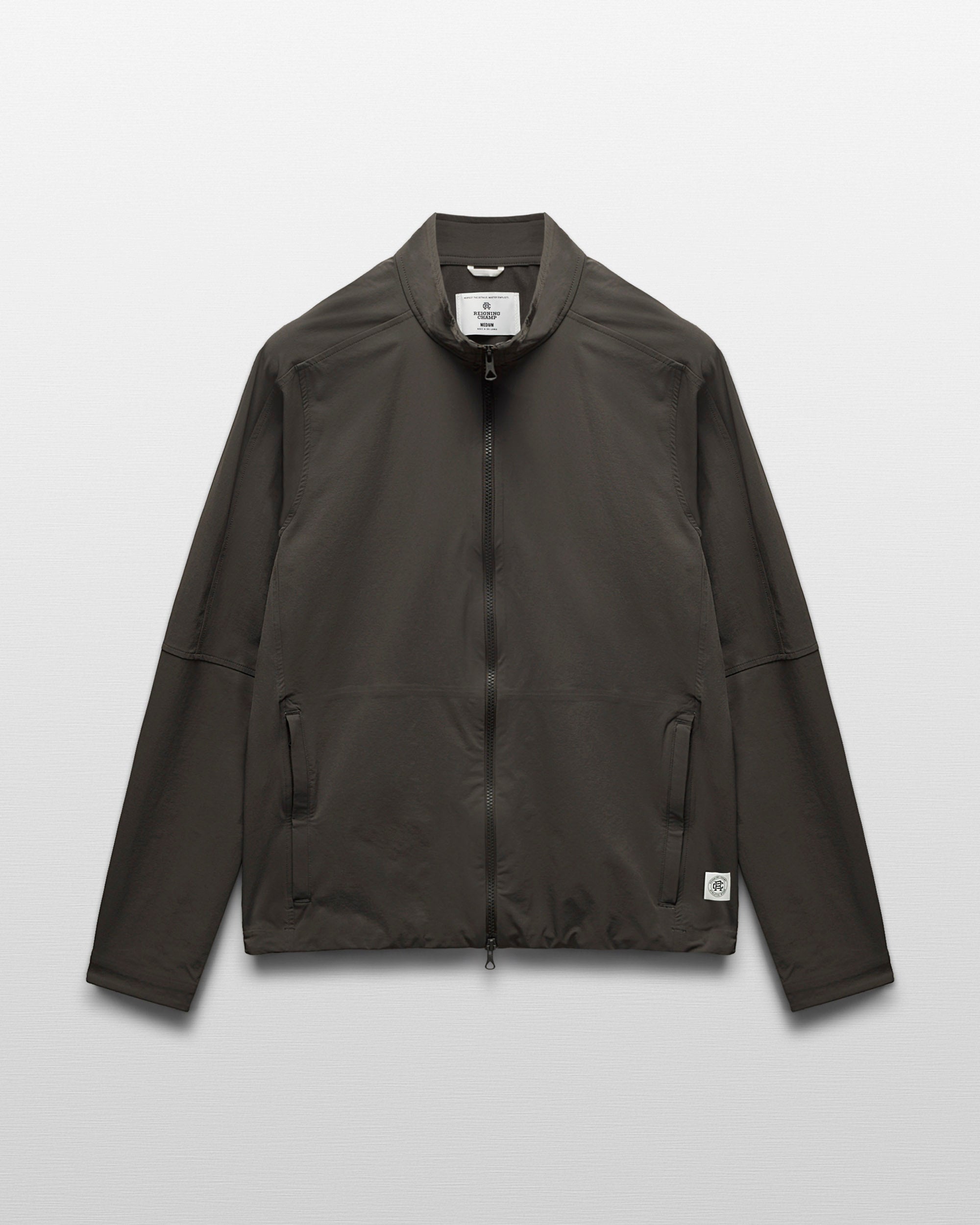 ストレッチ性に優れるナイロンジャケットはスポーツシーンからライフスタイルまで動きやすいよう設計。撥水加工を施した耐摩耗性に優れるオックスフォードの裏地が特徴です。デザインにはモックネック、YKKビスロンダブルジップ、前部のジップ付きのウェルトポケット、伸縮性のある袖口、ショックコード付きの調整可能な裾を採用。