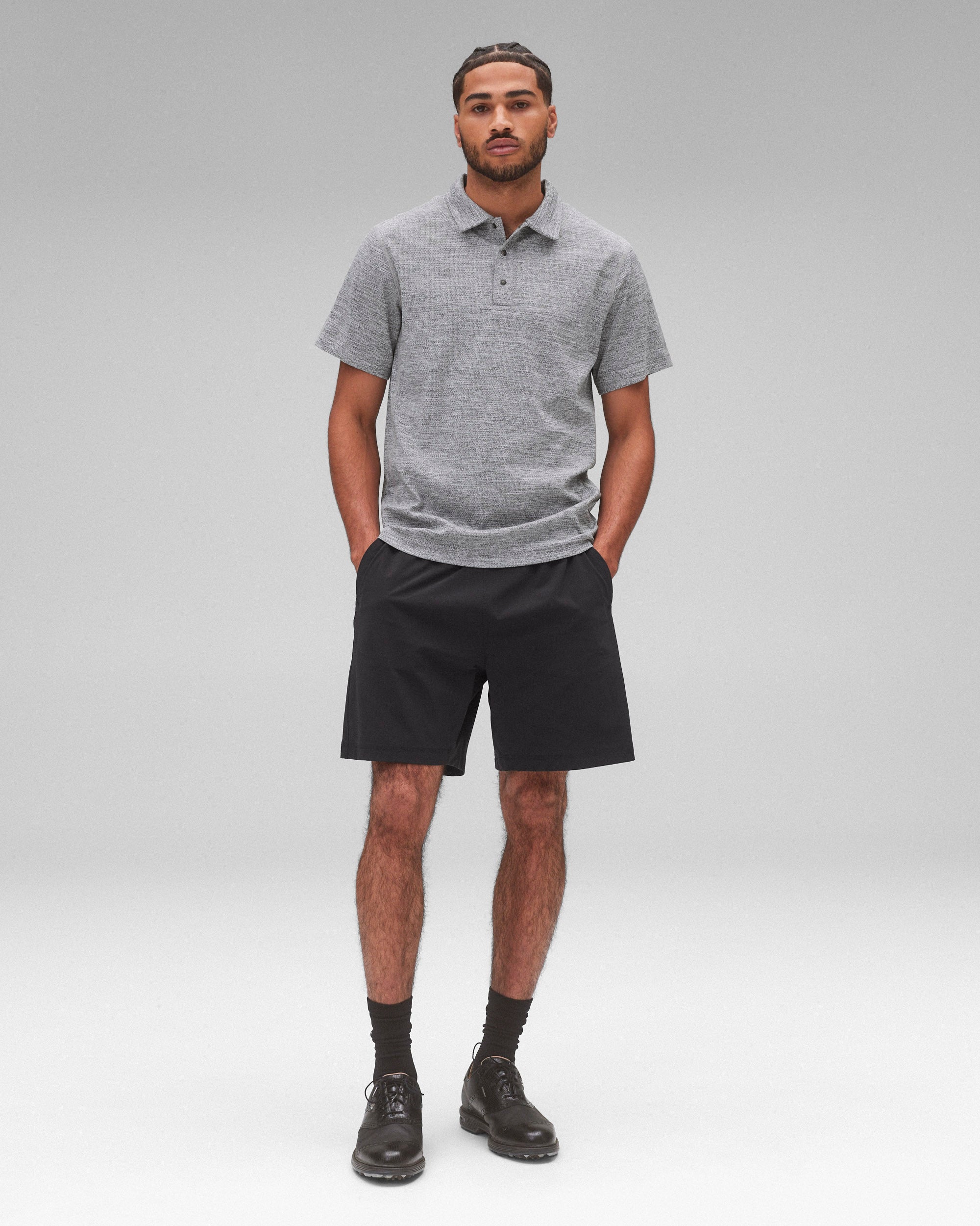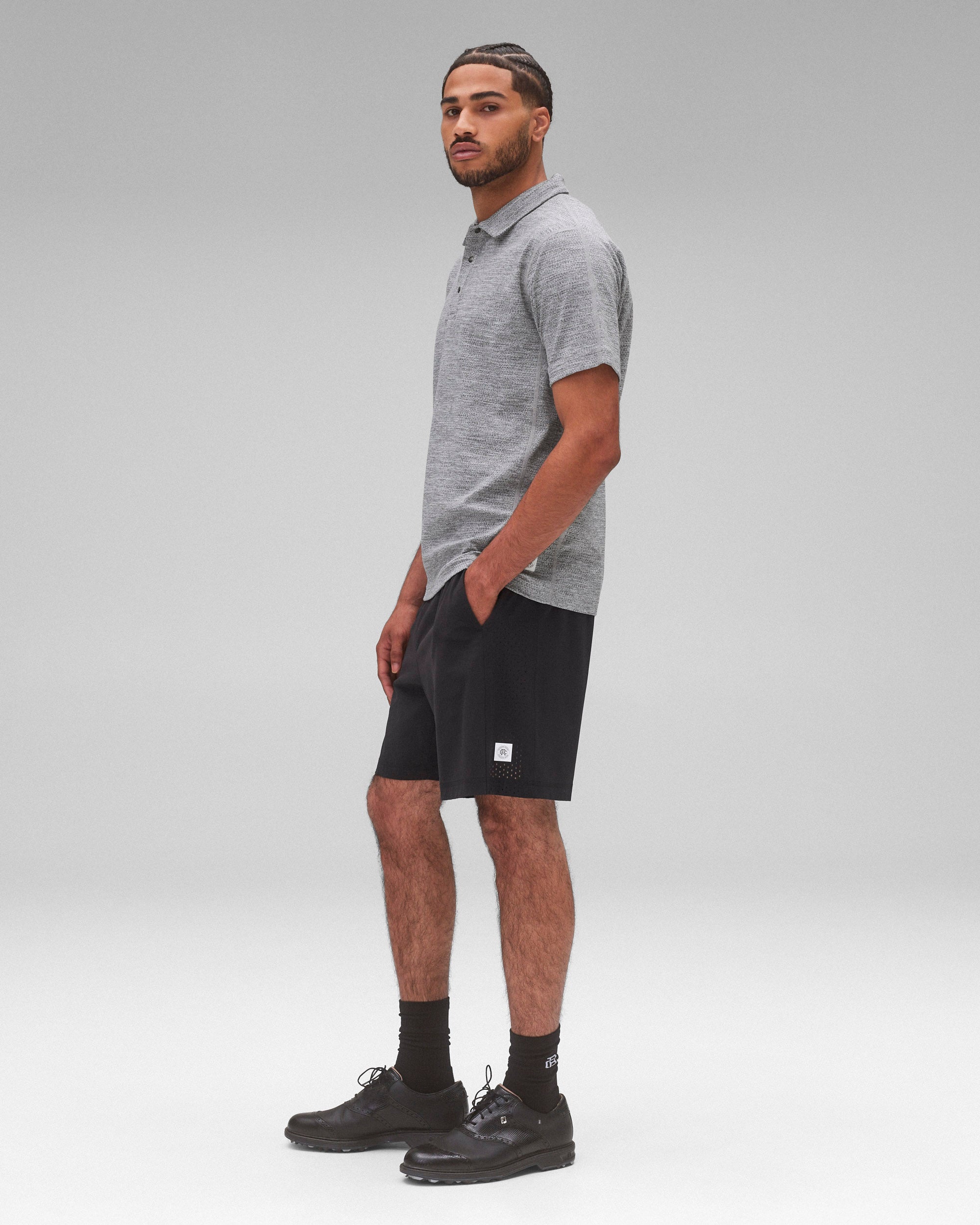 吸湿発散性に優れるメッシュポロシャツは、どんな状況下でも身体を涼しく保つよう設計。Solotex® Meshはストレッチ性、クッション性、通気性に優れ、滑らかなニットの裏地が特徴のパフォーマンス素材です。デザインには共布の襟、メタルスナップ、セミラグランスリーブ、可動域を広げる脇下のガゼットを採用。