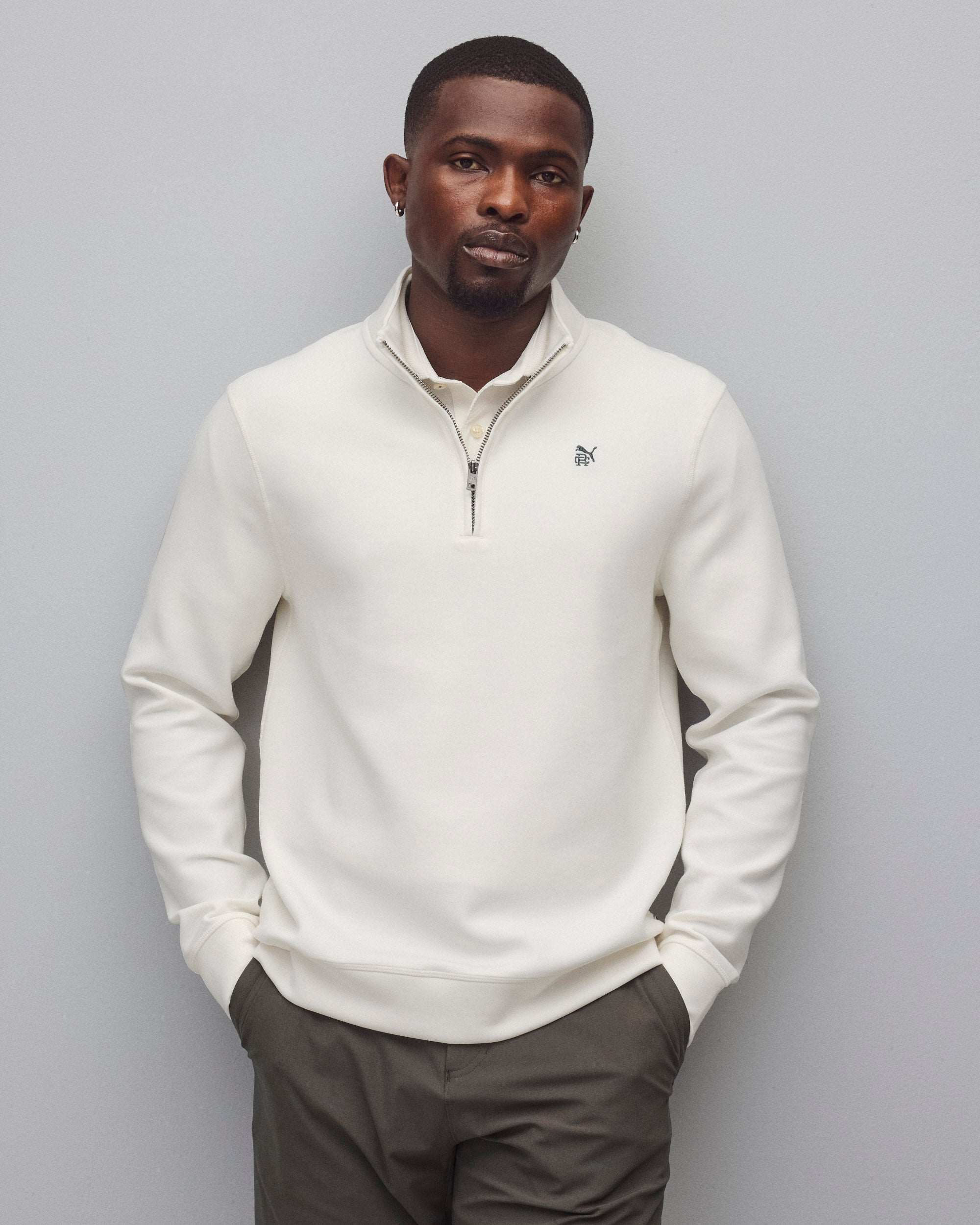 ピッチからパットまで、快適さを追求してデザインされたクォータージップは非常に柔らかく、吸汗速乾性に優れており、4-wayストレッチで自由な動きをサポート。生地にはPumaのCLOUDSPUNフリース素材を使用しており、50%以上をリサイクル素材で製作。特別なPuma x Reigning Champのコラボグラフィックで仕上げています。