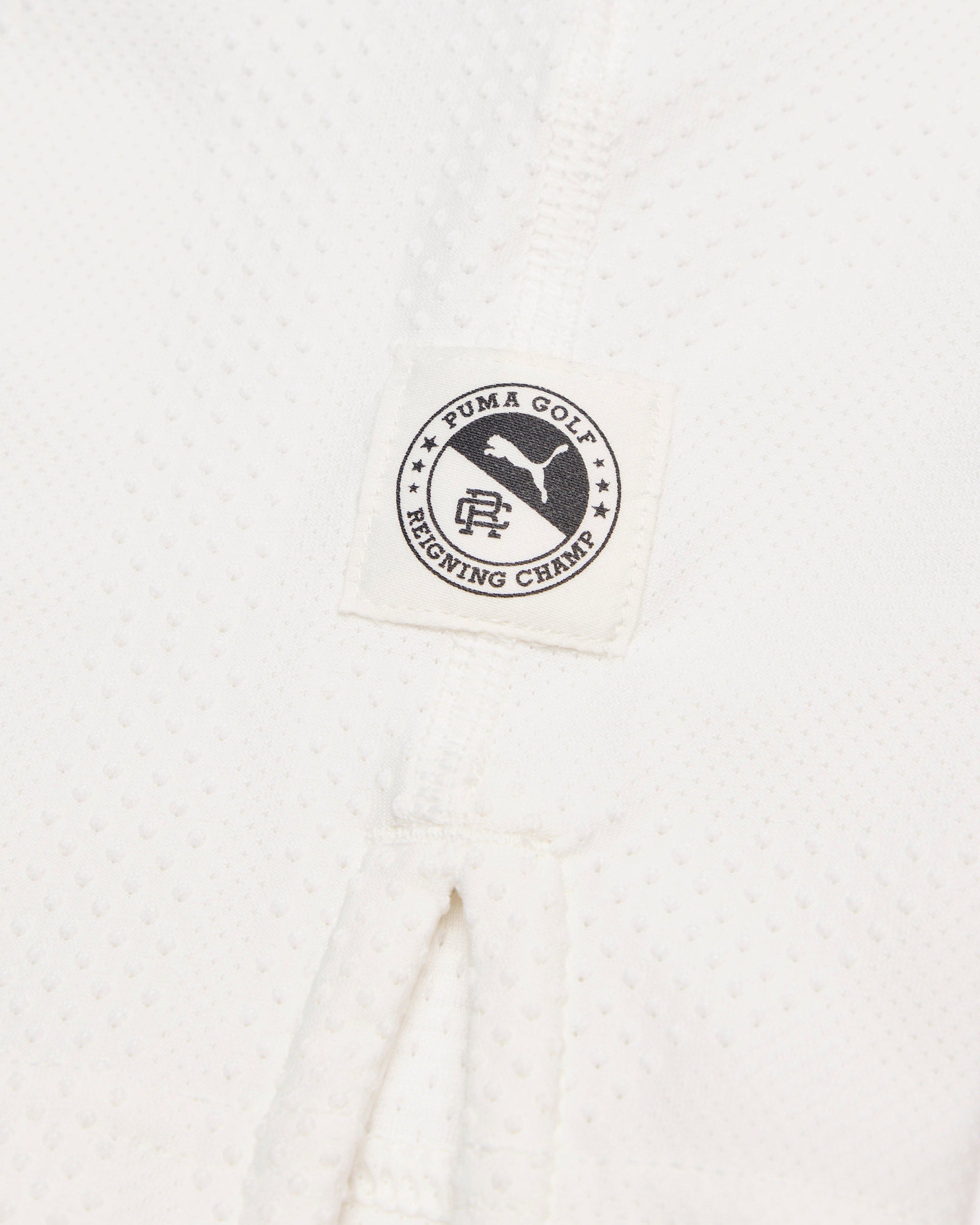 18ホールを通したパフォーマンスとスタイルを追求したポロは軽量で吸汗速乾性に優れており、動きを妨げません。生地にはPumaのMATTR素材を使用しており、90%以上をリサイクル素材で製作。同色のジャカードパターンと特別なPuma x Reigning Champのコラボグラフィックが特徴です。