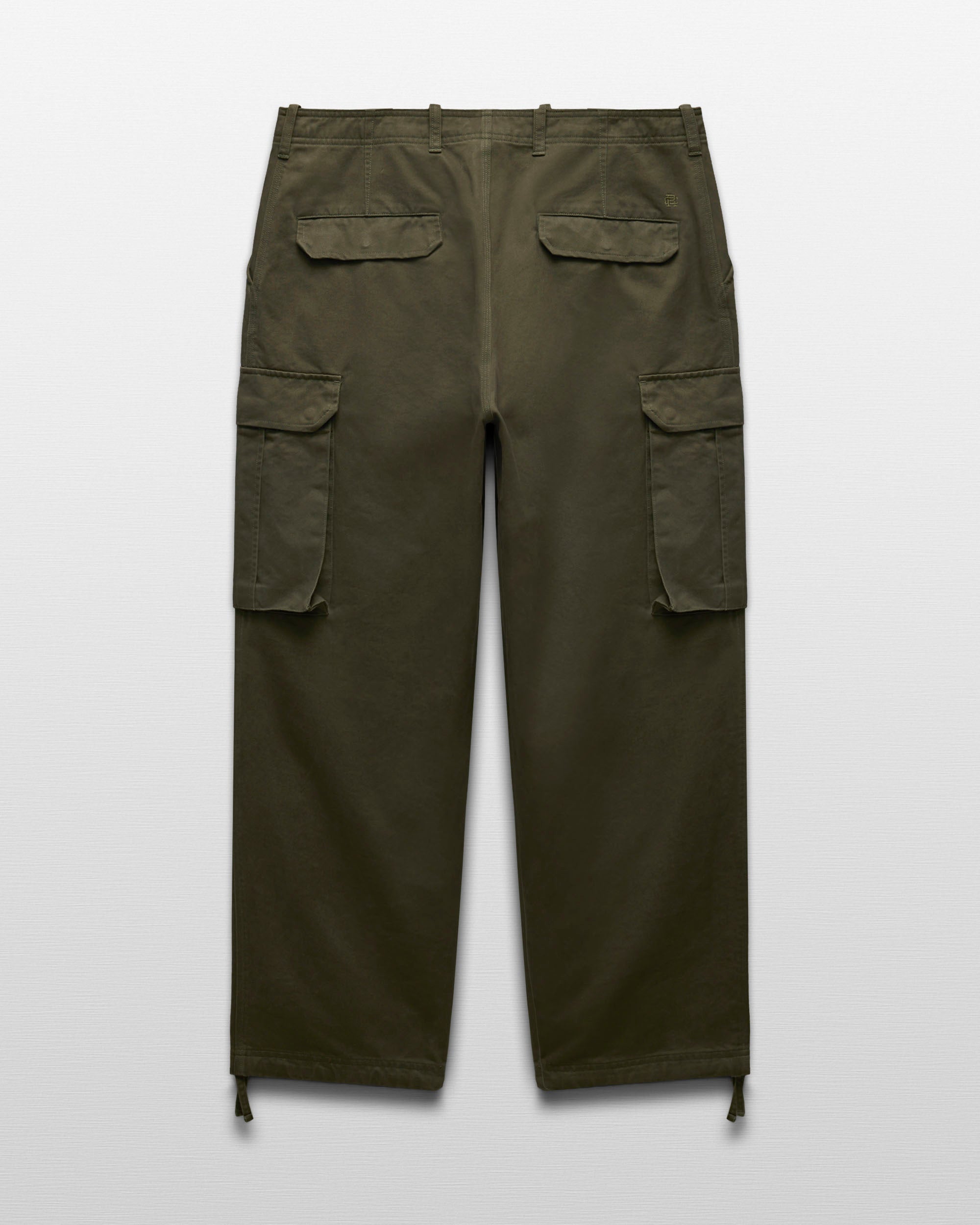 クラシックなカーゴパンツは生地により柔らかな質感を追求して洗いをかけたコットンチノツイルを使用して製作。ゆったりとしたストレートシルエットとレギュラーライズが特徴です。デザインにはベルトループ付きのウエストバンド、スラッシュポケット、YKKメタルジップフライ、カーゴポケット、リアフラップポケット、ドローコード付きの裾口を採用。ボリュームと可動域を広げるニープリーツ仕上げ。